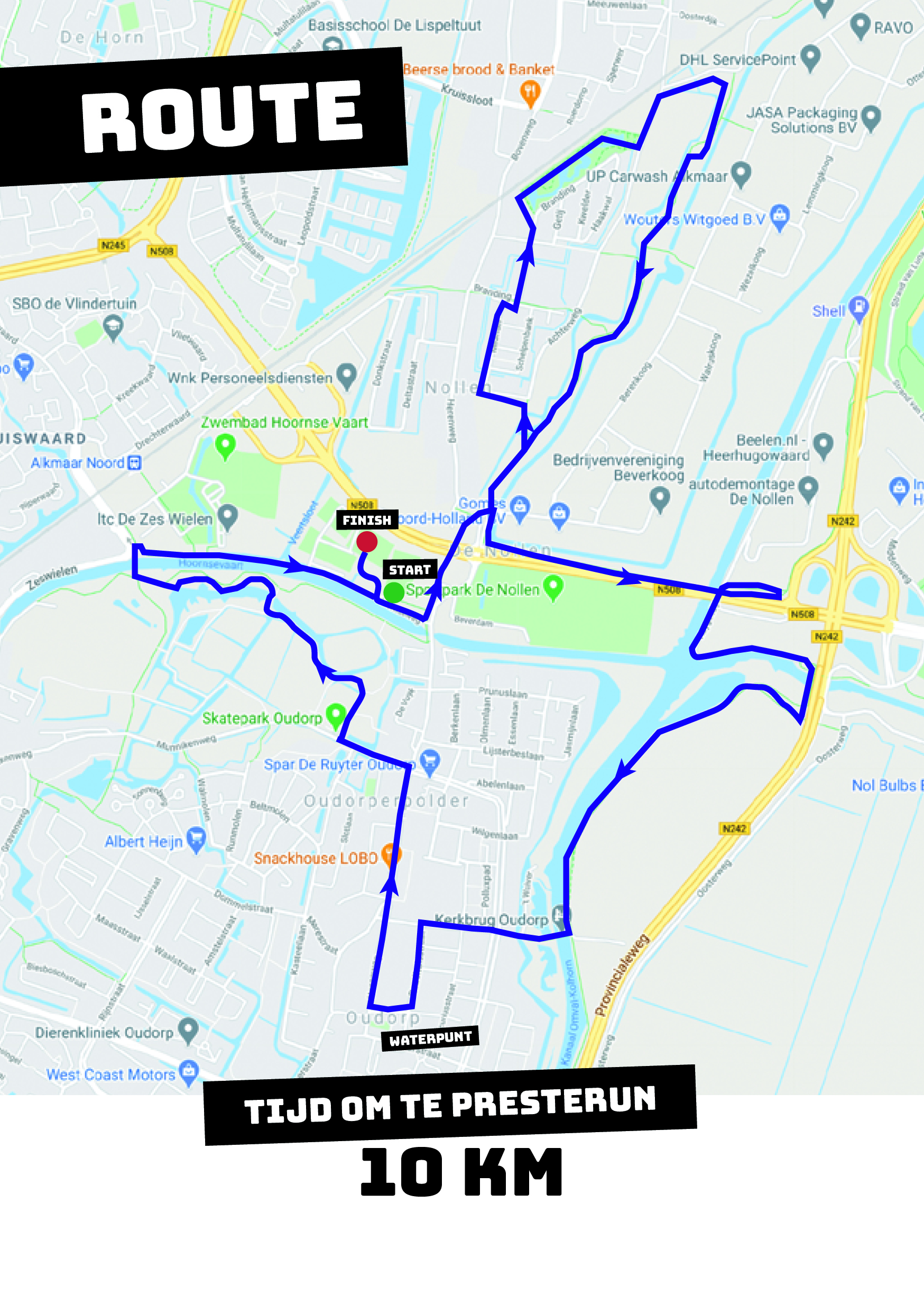 Start en finish vinden plaats bij De Vaart, Sportpark de Vaart, Hoornseweg 28, Alkmaar.
